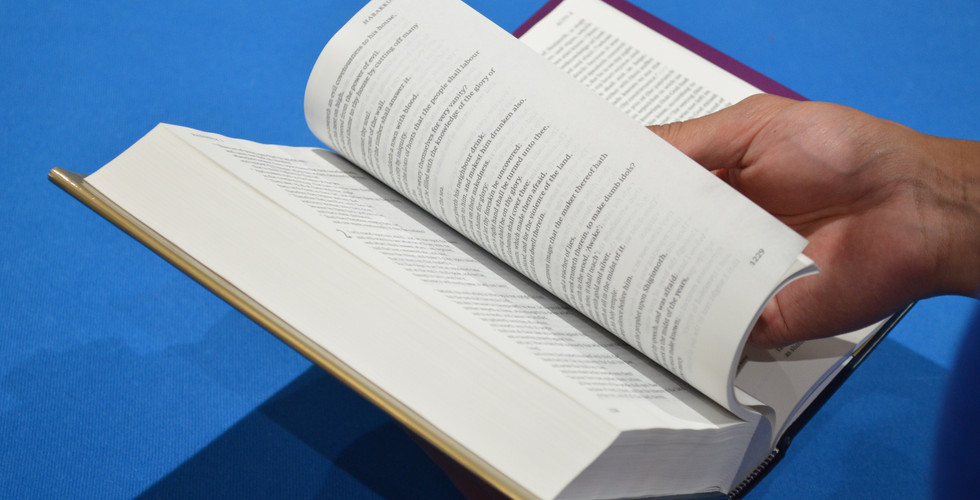 Overall, aside from the noted structural deficiencies, I loved the size of the NCPB. It was easy to wield and made for a perfect reader in terms of its layout. If it weren't for the book spine issues noted above, I would rate the hardcopy as a better edition than the calfskin. The cover has a really nice marble-eque pattern on it. Furthermore, the blue and white head-tail bands really accentuate the desirability of this blue hardcopy. You get the same Cambridge trademark spine rib indented etchings on the hardcover as you would on the Clarion. As a comparison, when compared to the Clarion, the references (Clarion) are located in the outer margin, whereas the translator notes (NCPB) are located in the inner margin. This layout employed by the NCPB ensures that the main text (scriptures) never reaches the gutter.